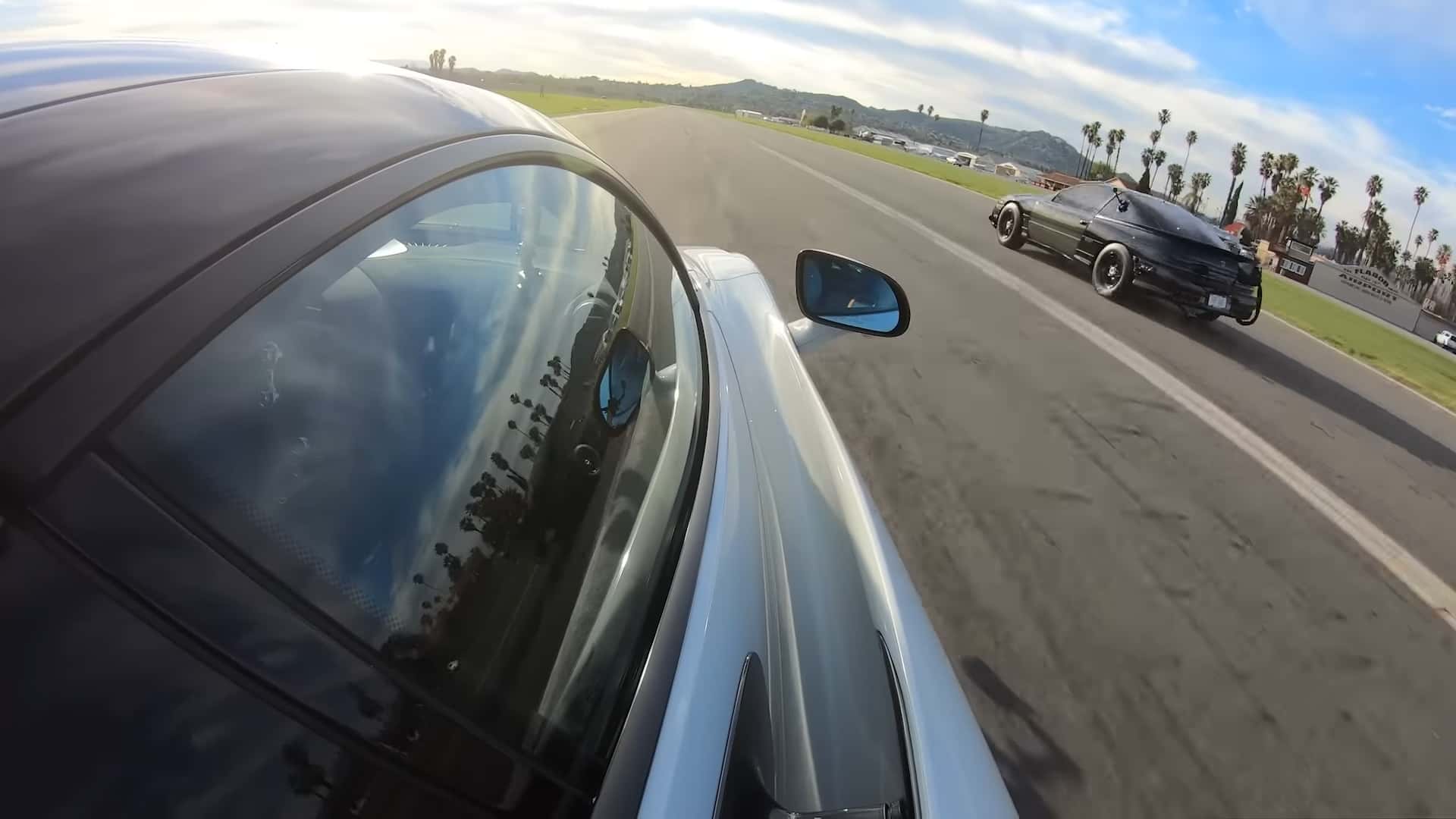 Here’s where it gets interesting. To balance things out, the McLaren gets a car length advantage and the hit off the start for the next race. But it still doesn’t matter. The Talon driver’s reaction time is just about perfect, and he rips down the track to another two-car-length win. And just to flex, he pulls his parachute to slow down.