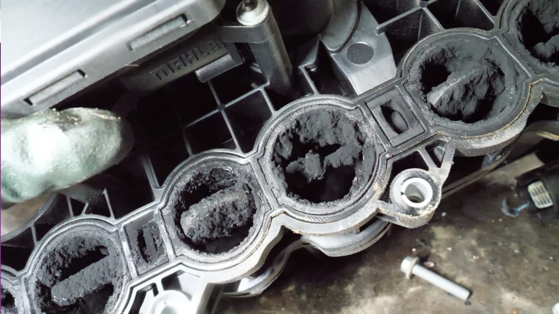 It’s only when Eric removes the heads does the damage become clear. One of the pistons, at some point, smacked into the valves, making a clear imprint on its face. Sure enough, when the oil pan is removed we can see copious metal shavings that, according to Eric, used to be bearings for the connecting rods.